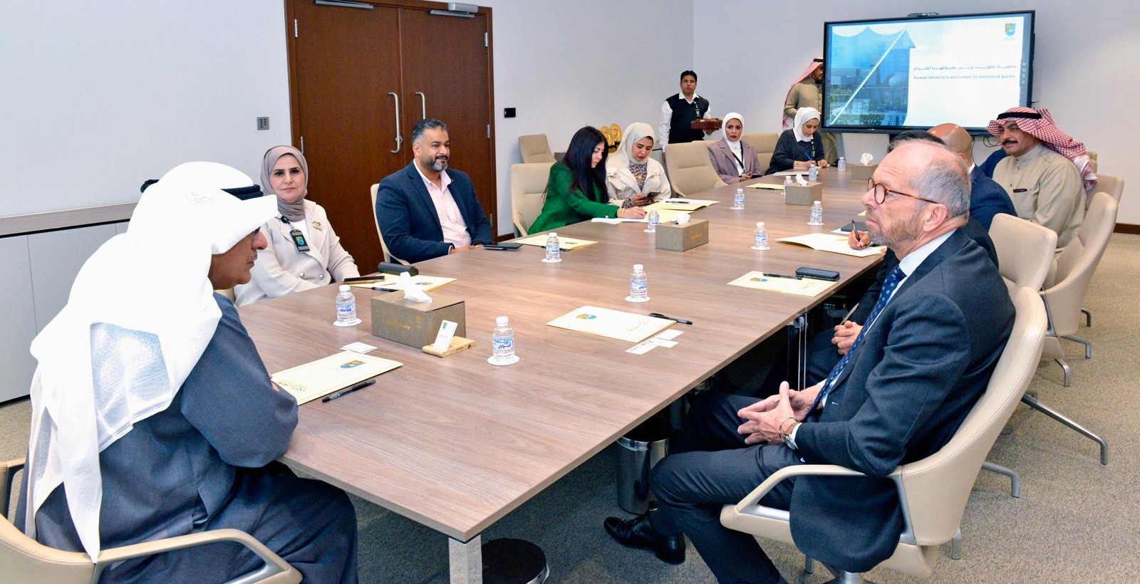 في إطار التعاون البحثي وتعزيز الشراكة الأكاديمية استقبل مدير جامعة الكويت بالإنابة الأستاذ الدكتور أسامة السعيد سعادة السفير الهولندي السيد لورنس ويستهوف ووفدًا من إلسيفير (Elsevier) للنشر العلمي، بتنظيم من القائم بأعمال نائب مدير الجامعة للأبحاث أ.د. مي داود البدر، وبحضور مساعد نائب مدير الجامعة لتطوير وتحليل الأبحاث د. ناصر فيصل التناك، ومساعد نائب مدير الجامعة لتمويل وتنفيذ الأبحاث د. حنين شفيق الغبرا، ومساعد نائب مدير الجامعة للتعاون البحثي الخارجي والاستشارات أ.د. نورية الكندري، والمدير العالمي للناشر الدكتور Young Suk (YS) Chi، والمدير الإقليمي للناشر إلسيفير الدكتور عمرو دهب، وذلك يوم الثلاثاء الموافق 10/12/2024 بمدينة صباح السالم الجامعية.