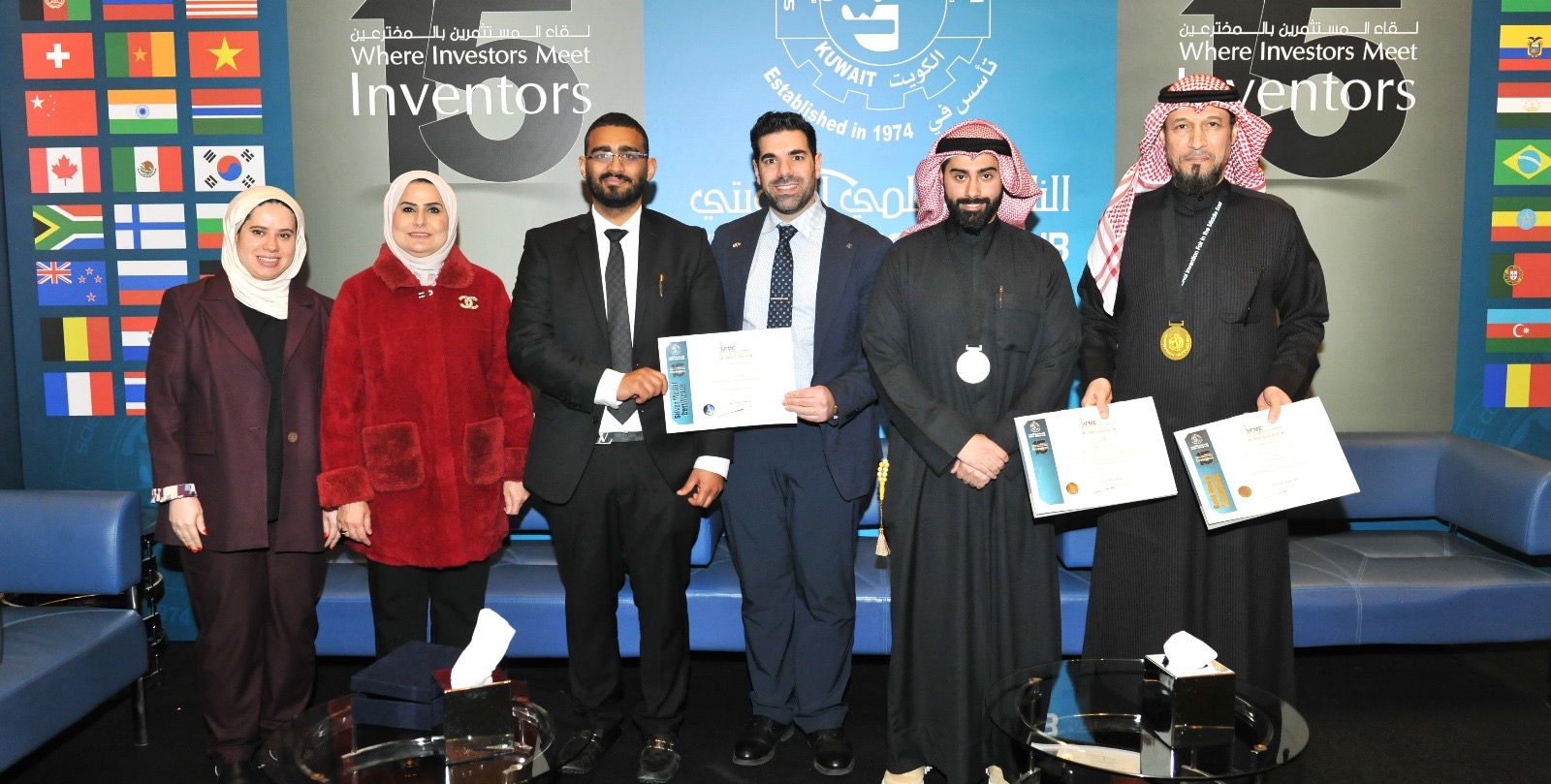 وقد بادر قطاع الأبحاث بجامعة الكويت بدعوة الباحثين من أصحاب براءات الاختراع المسجلة باسم الجامعة للمشاركة في هذا الحدث العلمي المرموق، حيث شارك أربعة من أعضاء الهيئة الأكاديمية بخمس براءات اختراع، محققين عدداً من الجوائز والميداليات التي تعكس تميزهم البحثي وريادتهم في مجالاتهم على النحو الآتي: