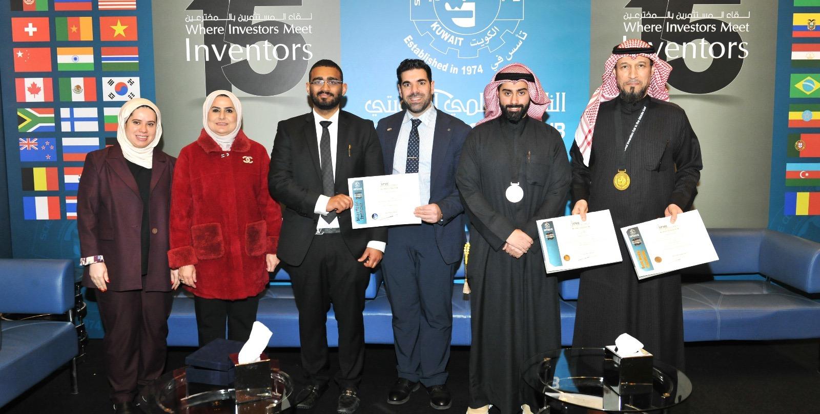 وفي سياق متصل، رشّح قطاع الأبحاث براءتي اختراع لكل من د. محمد الأنصاري من كلية الطب و د. أسامة العمير من كلية الهندسة والبترول، وقد جاء هذا الترشيح وفق معايير محددة وبالتنسيق مع مكتب براءات الاختراع التابع للأمانة العامة لمجلس التعاون لدول الخليج العربية للمشاركة في المعرض. وقد أسفرت مشاركتهما عن تحقيق إنجازات مشرفة، حيث حصل د. محمد الأنصاري على الميدالية الذهبية مع مرتبة الشرف، بالإضافة إلى جائزة الوايبو للمخترعين الكويتيين (WIPO AWARD FOR KUWAITI INVENTOR)، وحصل د. أسامة العمير مع فريقه البحثي م. نيازو كريس و م. أحمد عمر على الميدالية الفضية.