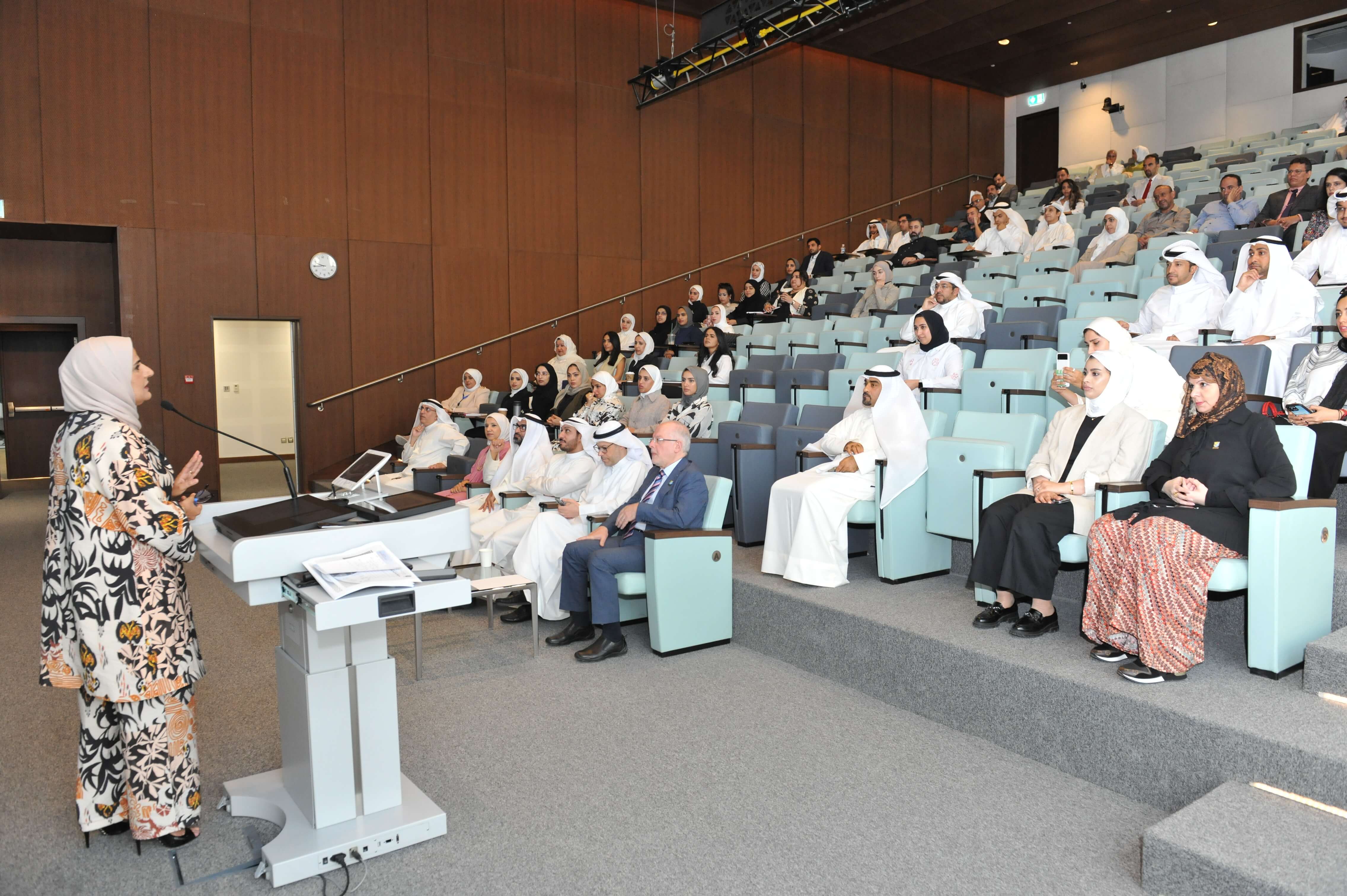 شاركت أ.د. نورية محمد الكندري ، مساعد نائب مدير الجامعة لتحليل وتطوير الأبحاث في اللقاء التنويري لأعضاء هيئة التدريس الكويتيين الجدد والذي نظمه مكتب نائب مدير الجامعة للشؤون العلمية . ودعت أ.د. الكندري أعضاء الهيئة الأكاديمية الكويتيين الجدد للاستفادة من هذه المنحة البحثية، حيث تعد تلك المنحة البحثية بداية نحو التقدم للأنواع المختلفة من المشاريع البحثية التي يمولها قطاع الأبحاث، حيث تمكن المنحه عضو هيئة التدريس الجديد من الإلمام بإجراءات التقديم للحصول على دعم للمشاريع الممولة بالإضافة إلى التعرف على الإجراءات المالية الخاصة بالتمويل وطرق التعامل معها. ويبلغ الحد الأقصى لمدة مشروع البحث التمهيدي هو 12 شهراً بميزانية لا تتجاوز 2000 دينار كويتي ، كما تقتصر بنود صرف الميزانية على الأجهزة والمستهلكات والعمالة المؤقتة .